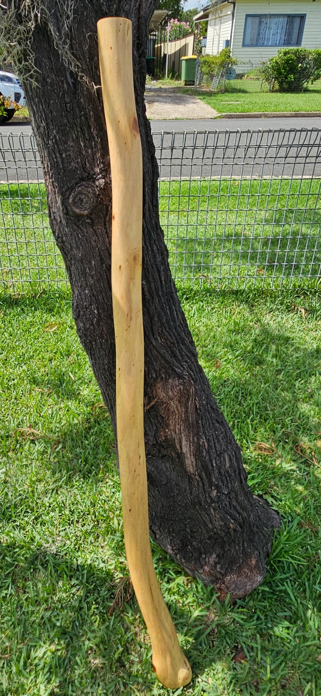 The Build: Hand-worked from a naturally hollowed stem, this instrument showcases the wild, swirling grain and vibrant color shifts of the Australian bush. Finished 100% naturally with linseed oil to protect the timber and highlight its unique "eyes" and textures.